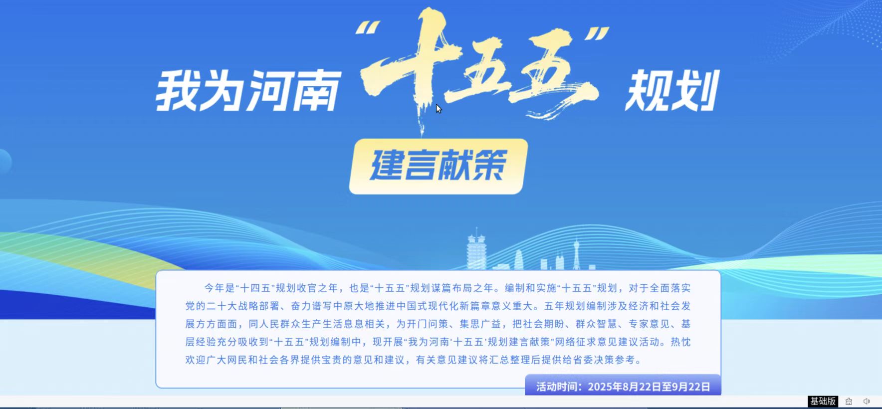 • 關于開展“我為河南‘十五五’規劃建言獻策”網絡征求意見建議活動的公告